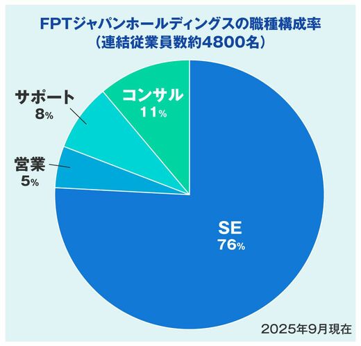 FPTジャパンホールディングスが進める25年度に国内人員を1000名増強する計画の中で、ベトナム籍の人材の採用は約4割、残りは日本のITベンダーなどで働いてきたベテラン社員のキャリア採用を想定している。
