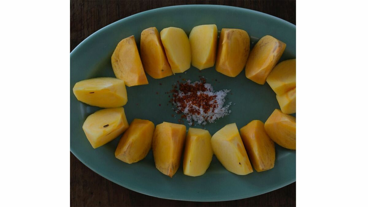 バインセオの皮の秘密と、唐辛子塩で食べるパパイヤ