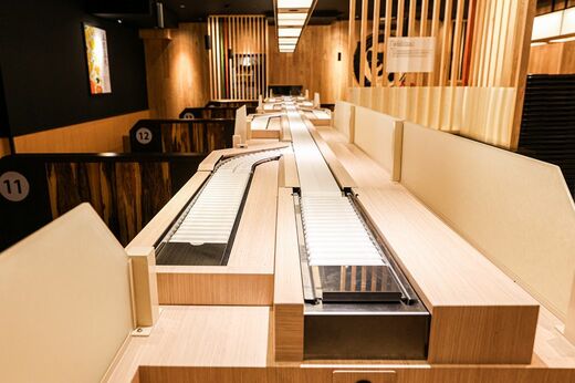 近年では配膳ロボット、特急レーンの導入などのDXも進めている。レーンは出店や改装のタイミングで導入しており、今は約360店舗(2025年9月時点)のうち約40店にレーンが設置されている。