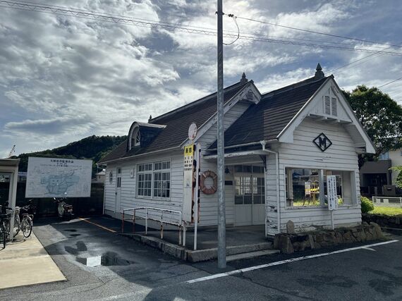 向島側のフェリー発着場(市営バスの兼吉バス待合所)の脇には、大林宣彦監督の新尾道三部作の1つ、映画『あした』(1995年)で「呼子丸の連絡船待合所」として使われたロケセットが設置されており、ここ向島がメインのロケ地であったことを気づかせてくれます。
