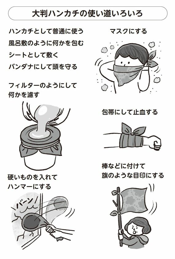 幅広い用途に使える「大判ハンカチ」と「ポリ袋」