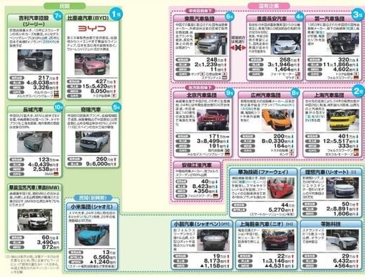 独VWや米ゼネラル・モーターズ(GM)と合弁事業を展開する上海汽車の販売台数は2006年に初めて第一汽車を抜き、中国最大の自動車グループとなった。中国新車市場は大手国有企業が主導する商用車・公用車時代を経て、外資系ブランドが主導するマイカー時代に突入し、上海汽車は18年連続で中国自動車市場のトップに君臨した。しかし、2024年の販売台数で上海汽車は初めて比亜迪汽車(BYD)に抜かれ、業界2位に転落した。