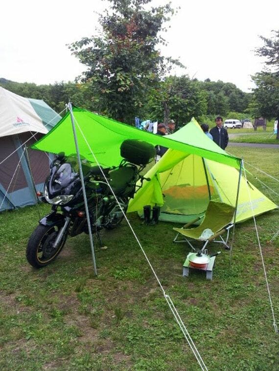 キャンプ場のテントとバイク(写真:織田さん提供)