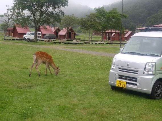 朝晩キャンプ場に現れるエゾシカ(写真:織田さん提供)