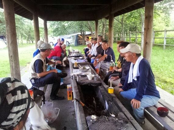 キャンプ場で仲間と食事(写真:織田さん提供)