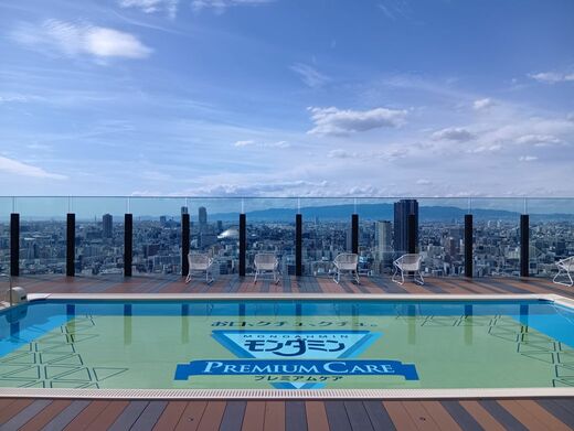 私は部屋に荷物を置くことすら忘れて、テンション上げ上げでホテル内の冒険を開始。おしゃれな飲食店や手荷物一時預かり所など、充実したサービスに度肝を抜かれたが、最も感動したのは40階にある屋上展望台(スカイプール)。京セラドームや梅田の高層ビルなど、大阪市街を一望することができる展望台は、なんと入場料が無料。ベンチも設置されており、平日の昼過ぎだったこともあるせいか、私は展望台からの絶景を独り占め。