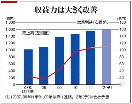 しかし、昨夏以降、業績は力強い回復を見せている。12年3月期通期は最高益を更新したもよう。逆風を吹き飛ばすことができたのは、09年から取り組んできた社内改革が着実に成果を上げているからだ。