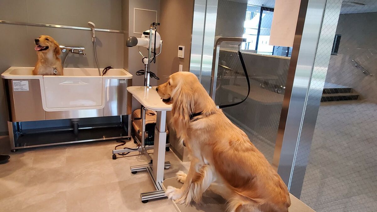 さらに、共用部にトリミングスペースを設けて、大型犬や中型犬でニーズがある「ドッグバス」や「トリミングテーブル」(ハンズフリードライヤー付き)を用意した。