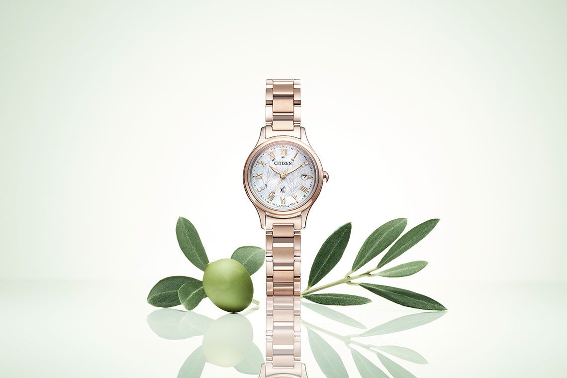 ベースとなったのは、軽量でキズに強く、肌に優しいスーパーチタニウムTMを採用した人気のhikari collection。肌を明るく美しく見せるシチズン独自のサクラピンク®が使われている。さらに、5気圧防水や定期的な電池交換が不要な光発電エコ・ドライブ、世界4エリアに対応した多局受信型電波時計など、機能面も充実している。