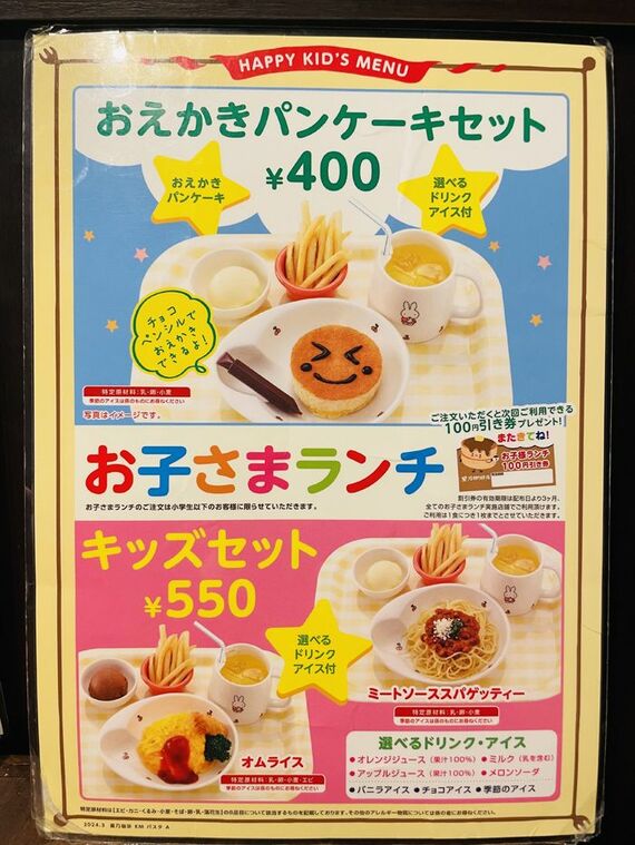 しかし、現地にはちゃんとキッズメニューのシートが用意されていた。さっそく内容について紹介したい。