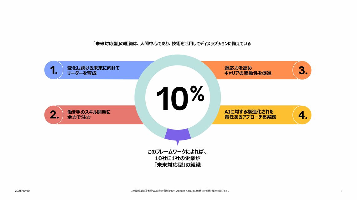 平野氏が言うようなAI先進企業は、企業調査の中で10%の「未来対応型」として取り上げられており、従業員のスキルアップに熱心で、リーダー育成のために投資を行い、変化に柔軟に対応できる体制を整えているという。こうした企業の取り組みを参考にすることも必要だろう。