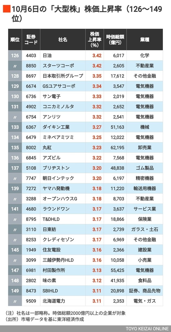 政治・経済・投資 6位NEC、4位アドバンテスト、では1位は? 「高市トレード」で株価が上昇した《大型株》ランキングTOP150 2分で読める 公開日時:2025/10/07 05:00 東洋経済オンライン編集部 フォロー 1/7 PAGES 2/7 PAGES 3/7 PAGES 4/7 PAGES 5/7 PAGES 6/7 PAGES 7/7 PAGES まだある「上昇率3%超」の銘柄 (外部配信先ではランキング表をすべて閲覧できない場合があります。その際は東洋経済オンライン内でお読みください)