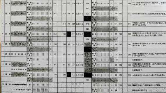 著者の手元に複数の一覧表がある。前回報じた、2018年から毎年、JR東日本の各職場で行われている「過半数代表選挙」の結果を取りまとめた、いわゆる“星取表”である。