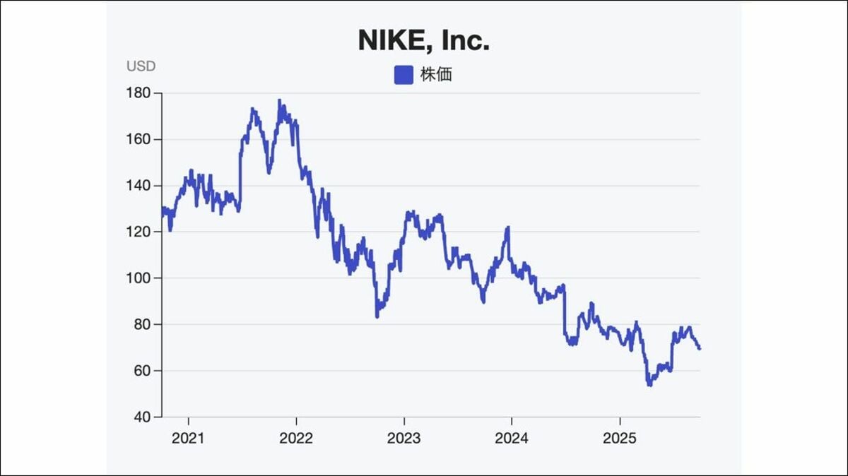 スポーツ用品世界最大手のナイキが9月30日に発表した2025年6〜8月期決算が、市場にポジティブな驚きをもって受け止められました。売上高は117億ドル(前年比1%増)でしたが、純利益は7.3億(同31%減)と大幅な減益です。