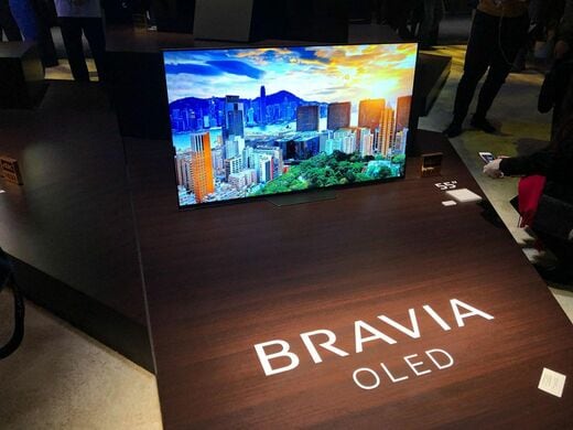 以下の2つの写真は、2017年のCESで筆者が撮影したものだ。ソニーブースには最新のテレビが展示され、CES会場には同社製品が並んだ垂れ幕がかかっていた。