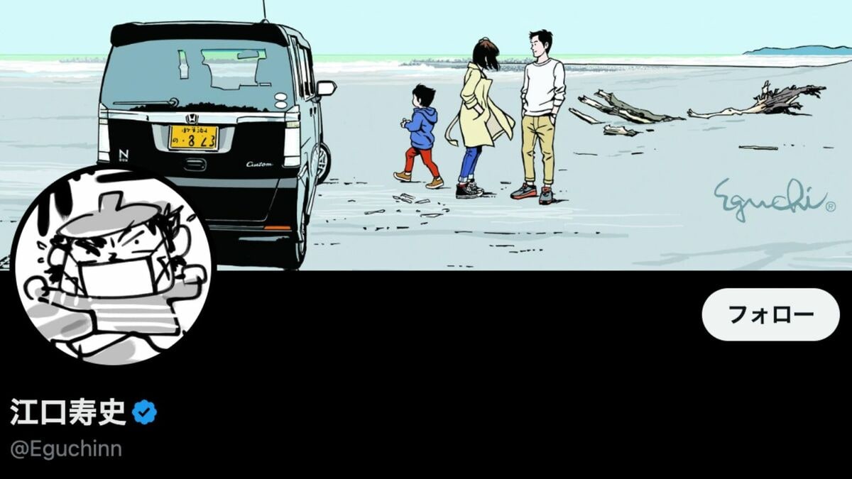 人気漫画家・イラストレーターの江口寿史氏に“トレパク”疑惑が持ち上がり、次々と広告や販促物が取り下げになる事態となっている(画像:江口寿史氏の公式Xより)