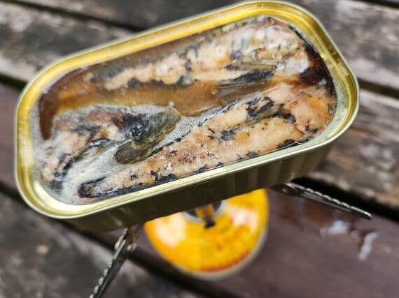 急いでオイルサーディンを火にかける(写真:筆者提供)