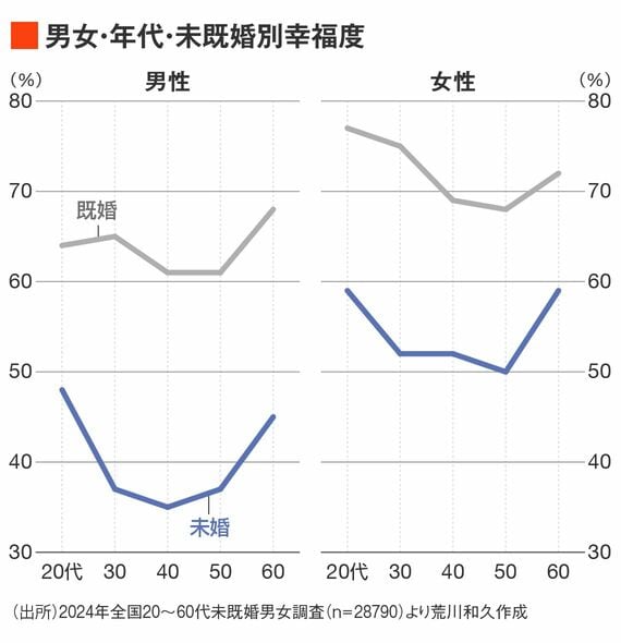 「中年未婚男性だけが特に幸福度が低い」のはなぜ?