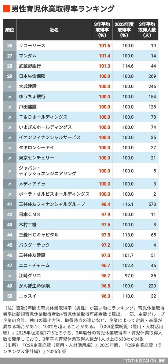 ビジネス #CSR企業総覧 前の記事 次の記事 「男性社員の育休取得率が高い会社」トップ100 3位はNTT西日本、2位はNTTドコモ、では1位は? 6分で読める 公開日時:2025/10/16 05:15 佐々木 浩生 東洋経済『CSR企業総覧』編集部 フォロー 1/8 PAGES 2/8 PAGES 3/8 PAGES 4/8 PAGES 5/8 PAGES 26~50位 次ページが続きます 6/8 PAGES 7/8 PAGES 8/8 PAGES