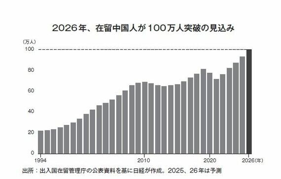こうした日本政府の緩和策があり、実際に高度外国人材の認定者数は右肩上がりだ。出入国在留管理庁によると、2015年には3840人だった高度外国人材は、2024年末時点で約7倍の2万8708人に急増した。国籍別でみると、やはり中国人が7割近い1万9228人を占めている。中国人のための支援策ともいえるほどの伸びである。