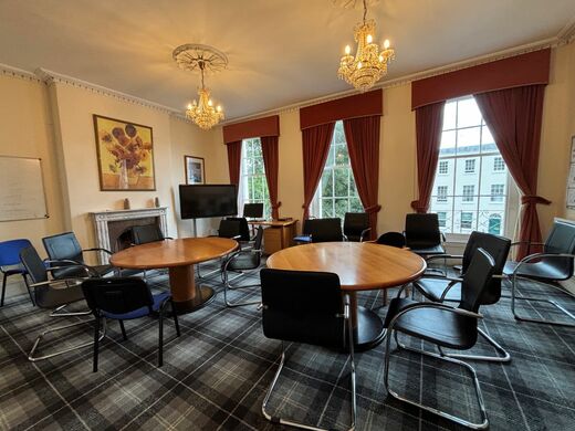 翌日、英国文化を五感で味わいながら英語を学べる語学学校Inlingua Cheltenhamを訪問しました。イギリスらしいアットホームかつ洗練された雰囲気の人気校で、担当のCaleb Williamsさんは日本に留学した経験もある親日家。