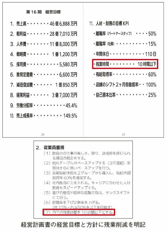 さらに、経営計画書で、残業を減らす方針を打ち出しているため、残業が多いと方針違反で評価が下がります。評価を下げたくないから、残業が減り、残業が減ると経費削減になります。