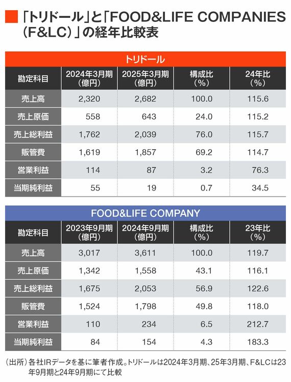 外食産業の中で、業績を伸ばしている2社で筆者が注目しているのが、トリドールとスシローのF&LCです。