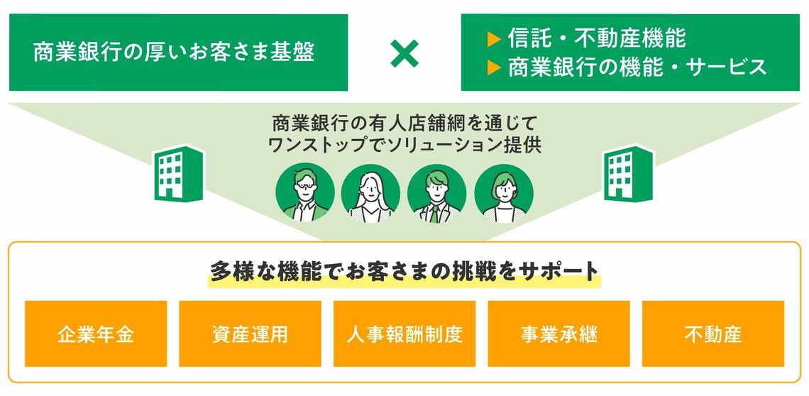 そして信託機能を持つ商業銀行という仕組みを通じて、ワンストップでお客さまに必要なサービスを提供していきます。