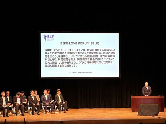 今回のBLFでは、自工会、全国オートバイ協同組合連合会、日本二輪車普及安全協会、日本自動車輸入組合、日本自動車部品工業会、全国二輪車用品連合会、日本二輪車オークション協会、中古二輪自動車流通協会、日本モーターサイクルスポーツ協会、日本ヘルメット工業会のバイク関連団体関係者が一斉に登壇し、政策課題と実施施策について詳しく説明した。