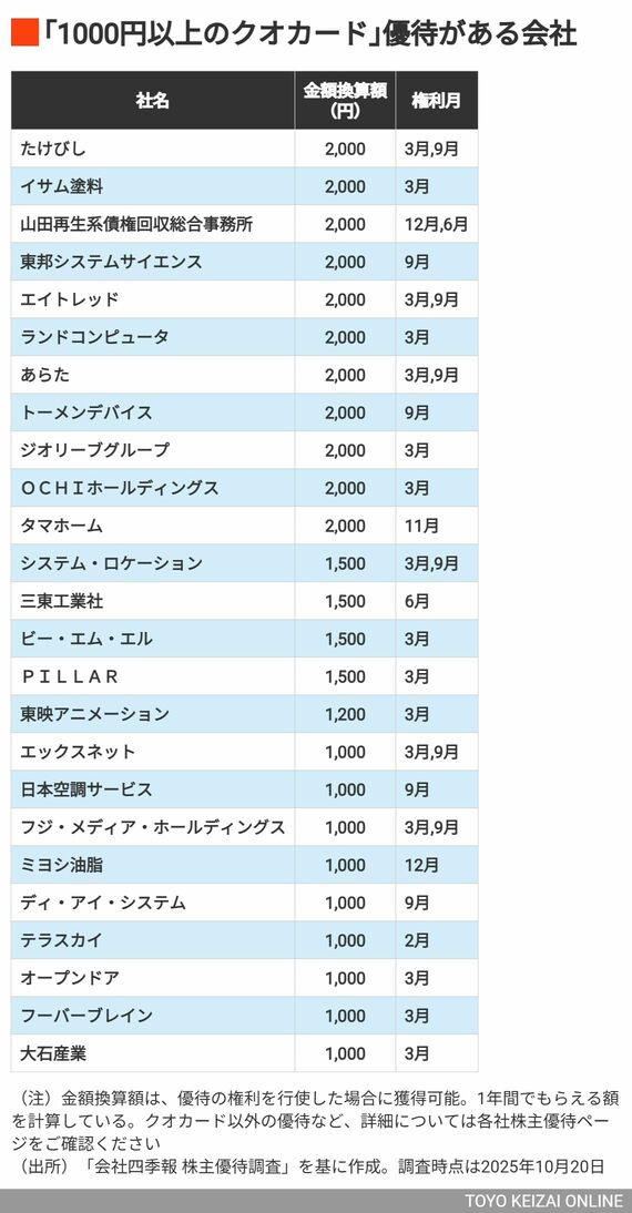 1万円分がもらえる会社も!優待で「1000円以上の"クオカード"」をもらえる会社リスト140 初心者にもわかりやすい恩恵が魅力