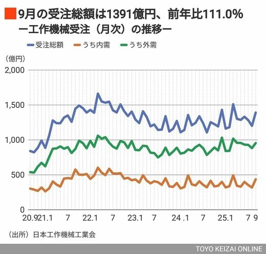 今回は、10月21日に発表された2025年9月分の受注統計(確報)の結果と、3カ月おきに開催される、坂元繁友日工会会長(芝浦機械社長)らが登壇する定例会見・質疑応答の模様をお伝えする。