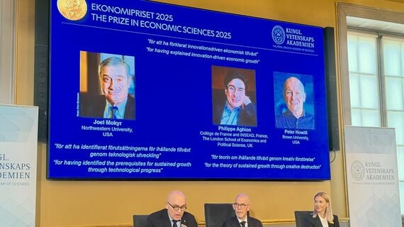 スウェーデン王立科学アカデミーは10月13日、2025年のノーベル経済学賞(アルフレッド・ノーベル記念スウェーデン国立銀行経済学賞)を「イノベーション主導の経済成長」を解明した3氏に授与すると発表した。