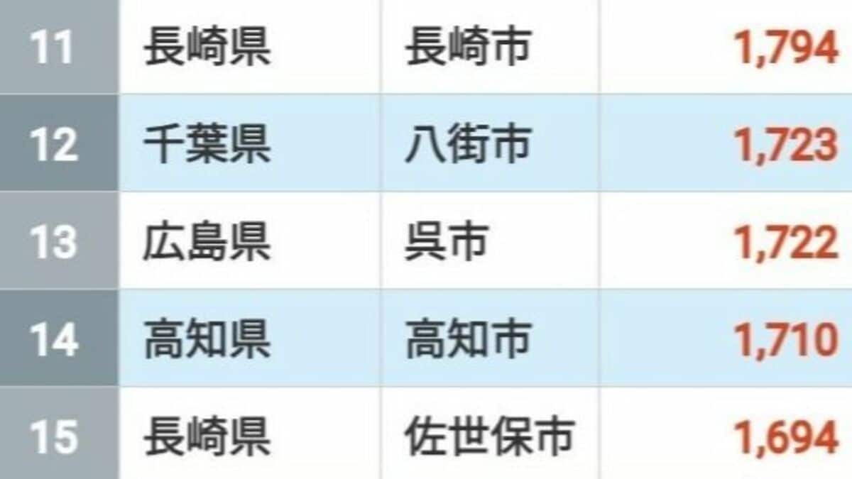 一方、沖縄県那覇市(6位)、長崎県長崎市(13位)、高知県高知市(16位)といった地方の拠点都市では、転出超過の大半を日本人が占める。福山市(2位)、広島市(3位)、兵庫県神戸市(8位)、福岡県北九州市(10位)といった西日本の工業都市も同様だ。