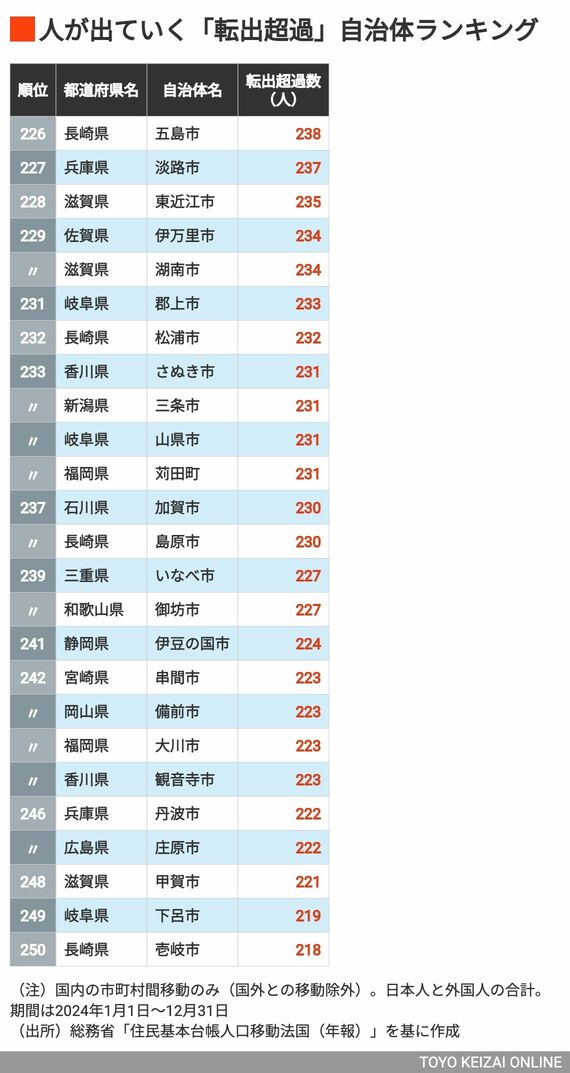 出て行く人が多い「転出超過」自治体ランキング 5位は愛知県豊橋市、4位千葉県成田市、ではトップ3は?