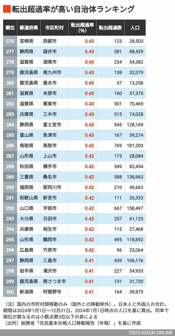 人が去っていく「転出超過率」の高い自治体ランキング 人口流出が深刻な意外な自治体はどこ