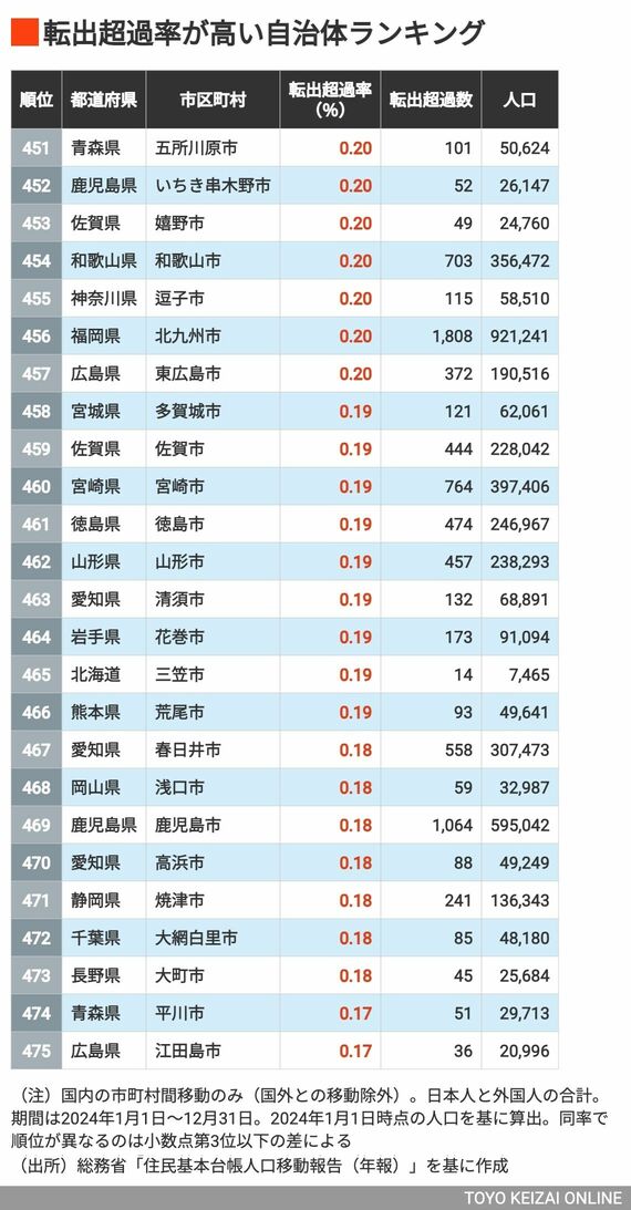 人が去っていく「転出超過率」の高い自治体ランキング 人口流出が深刻な意外な自治体はどこ