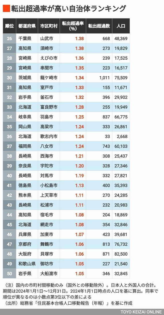 人が去っていく「転出超過率」の高い自治体ランキング 人口流出が深刻な意外な自治体はどこ