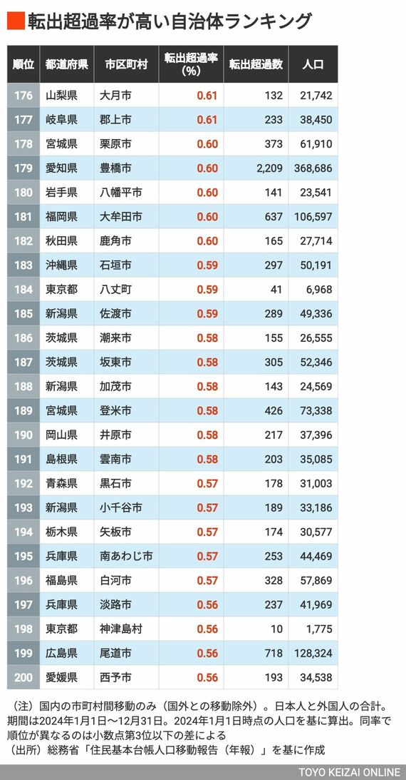 人が去っていく「転出超過率」の高い自治体ランキング 人口流出が深刻な意外な自治体はどこ