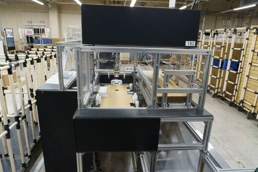 受け入れた段ボールは、協力会社と共同開発したカットマシンで効率的に処理される。大量の梱包材を自動で裁断し、作業効率を大幅に向上させている。段ボールの組み立てにも独自の機械を導入している。