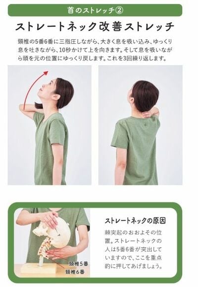 この可動範囲の確認で、首が真っ直ぐだったり、横方向に曲がっていたり、ねじれたりしていることがおよそわかります。上を向くのがきつい場合はストレートネックの可能性がとても高いです。携帯電話を片側で挟めなければ首は横方向にも曲がっています。首を動かしてジャリジャリ、ゴリゴリと音がするのであれば、すでに変形が始まっています。首押しプログラムで、毎日少しずつ首を整えていきましょう。
