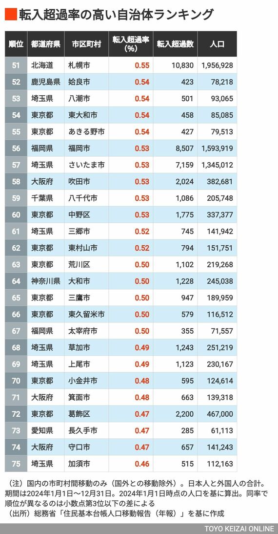 人が集まる「転入超過率」の高い自治体ランキング タワマン開発で流入が進む東京だけじゃない意外な自治体はどこ