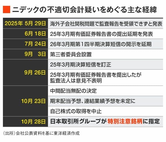 第三者委員会の調査結果が待たれる状況下で、JPXが新たな動きに出た。同社が傘下の自主規制法人の審査を受けて、ニデックを特注に指定したのだ。