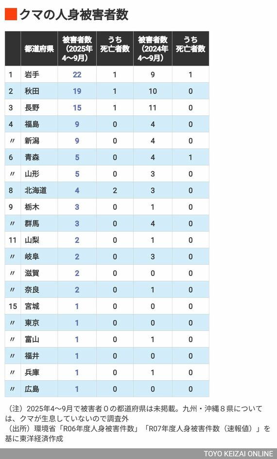 "クマ"の出没情報が多く、人身被害が深刻な「都道府県」一覧 クマの出没がない場所もある