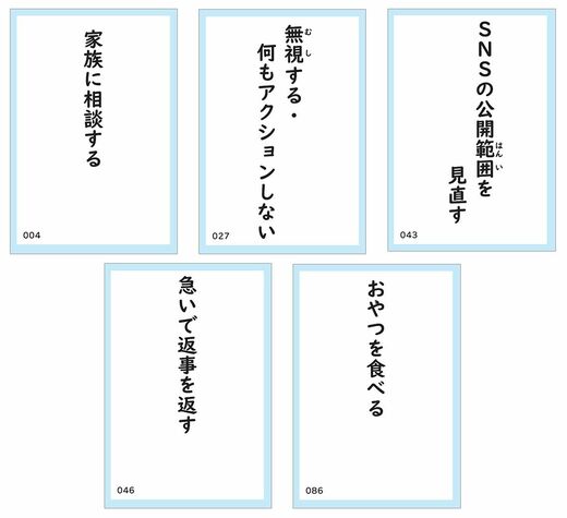 アクションカードの中に「おやつを食べる」「無視する」など、一見正解とはいえないカードも交ぜているのは、そうしたカードしか手元にない場合でも、最善といえる方法を考え抜き、話し合ってほしいからだ。