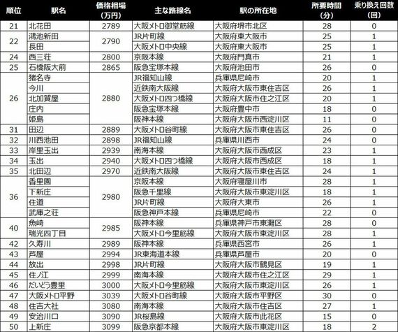 《梅田駅30分以内》中古マンション価格相場が安い駅ランキング2025年。二人暮らし・ファミリー向け(50~80平米)1位・2位は2000万円以下
