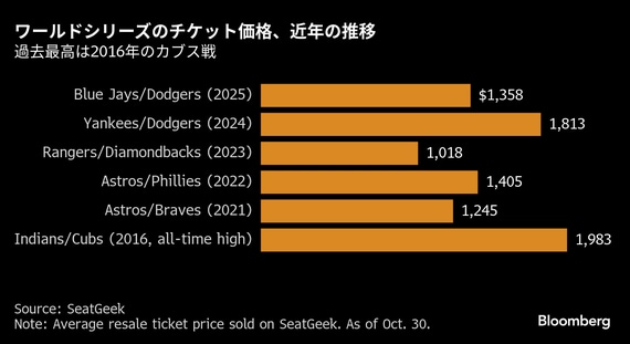 チケット転売サイトのシートギークによると、2025年の平均チケット価格は過去最高ではない。それでもホームプレートからはるかに遠い席でさえ、価格は高騰している。「シリーズが進むにつれ、トロントの需要が急増している」と同社のクリス・レイデン氏は述べている。31日に優勝が決まらず、第7戦が実現すればさらに高騰する見込みだ。