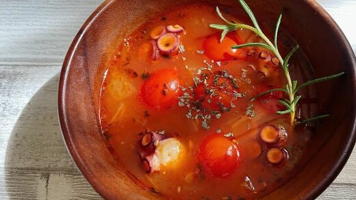 たこの旨みとジューシーなトマトが口いっぱいに広がる幸せなスープです。パスタやリゾットにもしたくなる味なので、お好みでアレンジを楽しんで。