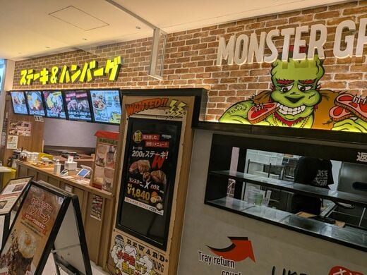 肉系テナントも目立つ。焼肉丼をメインに扱う「大阪焼肉 ふたごや」、ステーキとハンバーグの「モンスターグリル」、あとは鶏料理に絞った「国産鶏料理 鳥八」と、このテナント数とはいえ3割を肉専門店が占めているのはなかなかまれなのではないか。