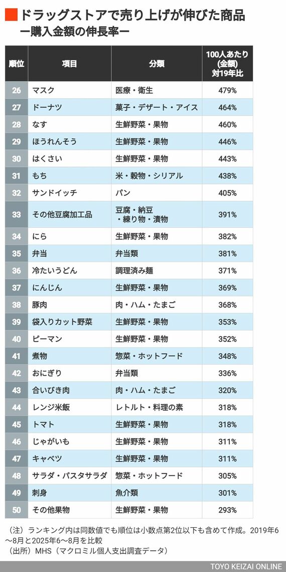 《ランキング》2019年と2025年を比較「ドラッグストア」で売上がぐんと伸びた"意外な商品"