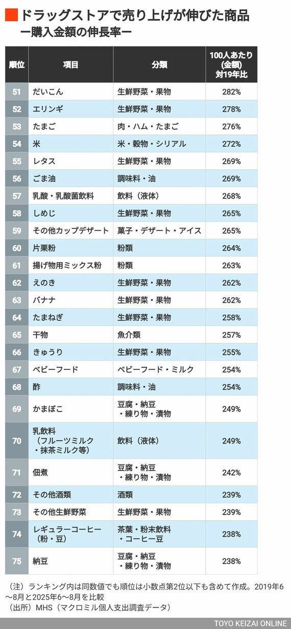 《ランキング》2019年と2025年を比較「ドラッグストア」で売上がぐんと伸びた"意外な商品"